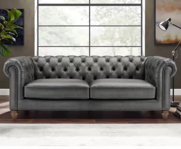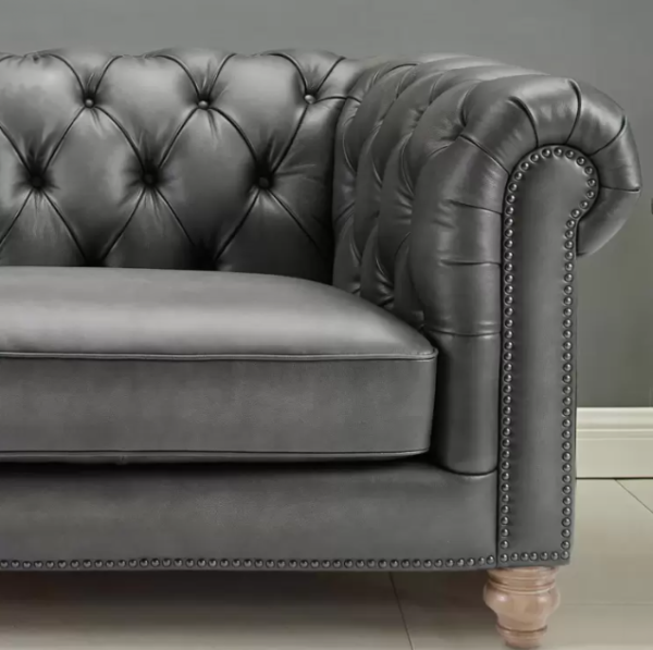 The seat cushions consist of spring coils encased in high-resiliency foam, wrapped in Dacron fibre and feather down to let you sink into the leather for unmatched comfort and durability. The premium sofa seat cushions are removable and rest on a no-sag platform which provides balanced weight distribution to withstand the test of time. The antique-style, solid wood feet are finished in dark brown to perfectly complement this collection.