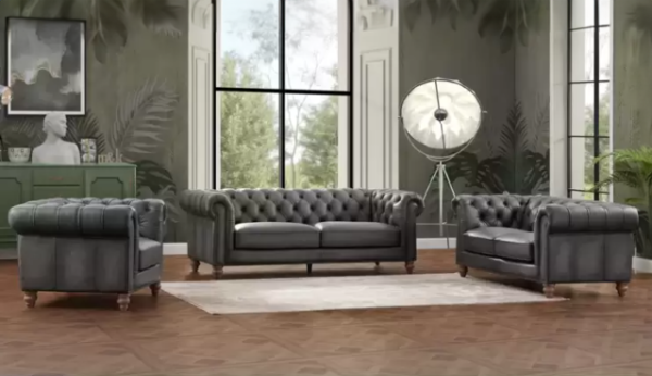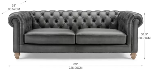 - Cover: Top grain leather on all seating surfaces & split leather on sides and back